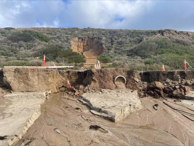 In theory, the system was designed to mitigate bluff erosion by redirecting water. However, State Parks environmental scientists Riley Pratt noted that it proved inadequate against the substantial water volumes generated by recent storms.